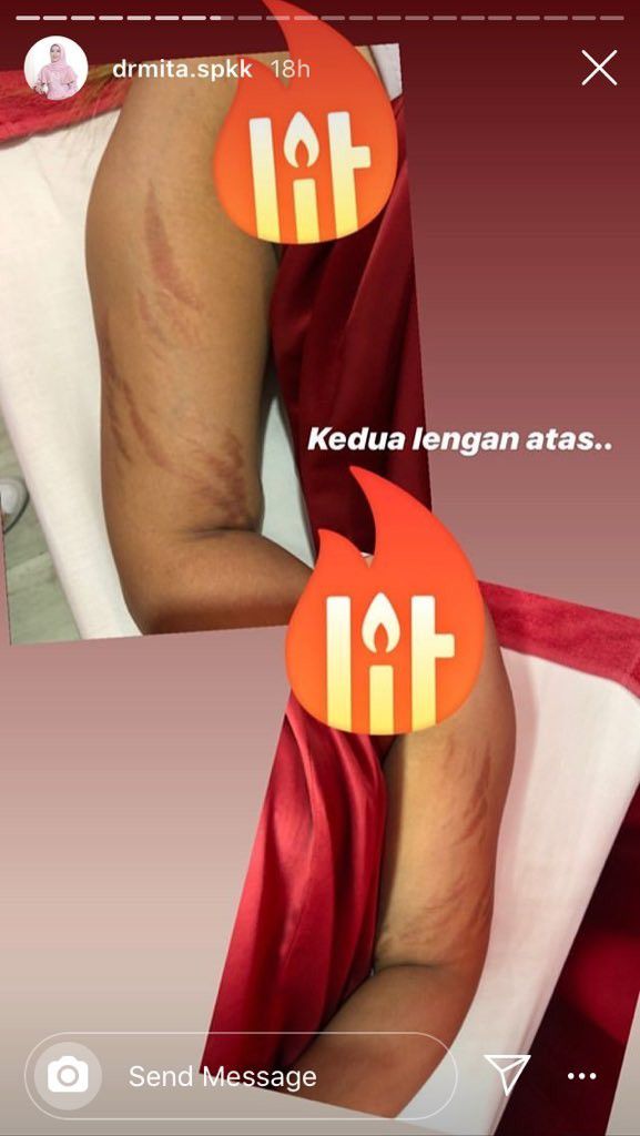 "Saya tahu dokter Mita dari Instagram ... saya ada keluhan persis kayak dokter share di IG. Kulit muncul gurat merah setelah pakai lotion pemutih beli online. Muncul di lengan, di paha juga ada. Kulit saya handur Dok, rusak," tulis dokter Mita melalui Insta Story-nya.