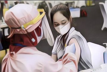 Seorang yang menjalani vaksinasi selalu disuntik vaksin di lengan sebelah ...