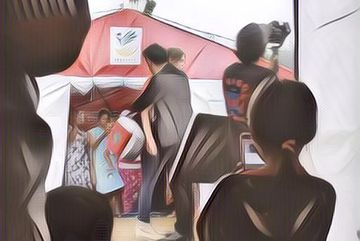 Lokasi pengungsian korban erupsi Gunung Semeru dijadikan lokasi syuting sinetron. ...