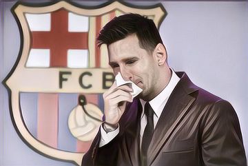 Lionel Messi menangis saat tinggalkan Barcelona. Messi mengusap air mata ...