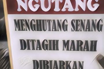 Banyak pemilik warung menempelkan tulisan agar pembeli tak berhutang.