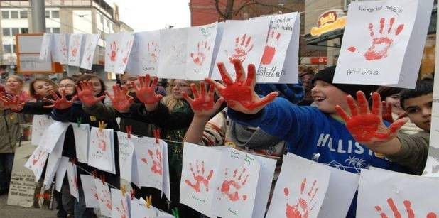 Hari Tangan Merah atau Red Hand Day diprakarsai pada tahun 2002 waktu Protokol Opsional mengenai Keterlibatan Anak dalam Konflik Bersenjata.