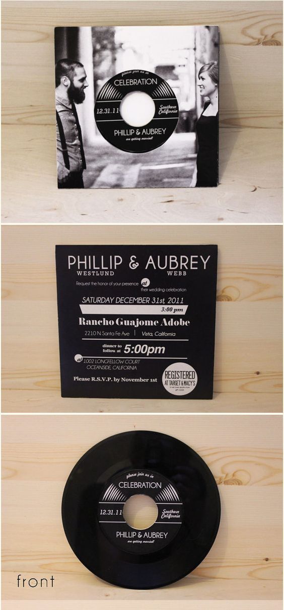 Bungkus piringan hitam pun bisa dijadikan referensi untuk menciptakan kreasi desain undangan unik. Nih, contohnya. Terlihat kece banget, cuy.