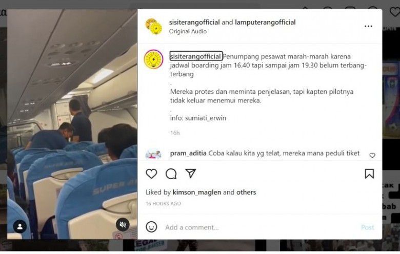 “Kalo delay masih di ruang tunggu sih masih ok, masalahanya udah di pesawat dan tiga jam enggak terbang-terbang, udah pasti ada yang salah mending turun deh,” komentar @ranyfebriyanti_26.