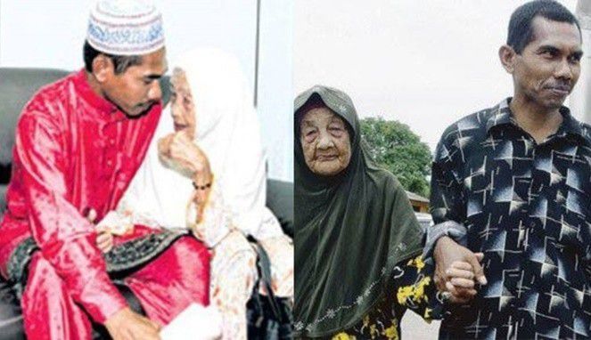 Jika dua cerita sebelumnya, perempuan menikahi lelaki yang lebih muda 20-an tahun, kali ini perbedaan umurnya lebih jauh lagi. Bukan 20 atau 30, nenek berusia 119 tahun ini menikahi brondong yang lebih cocok menjadi cucunya. Ya, Mek Wok Kundor yang berasal dari Malaysia ini menikahi Muhammad Noor Che Musa yang usianya lebih muda 70 tahun.