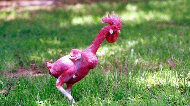 Ayam tanpa bulu ini terlihat seperti ayam biasa yang sudah dipetik dan direbus namun masih dapat berlalri dan hidup. Meskipun terlihat mengerikan namun kehadiran ayam tanpa bulu ini sangat bermanfaat bagi industri peternakan.