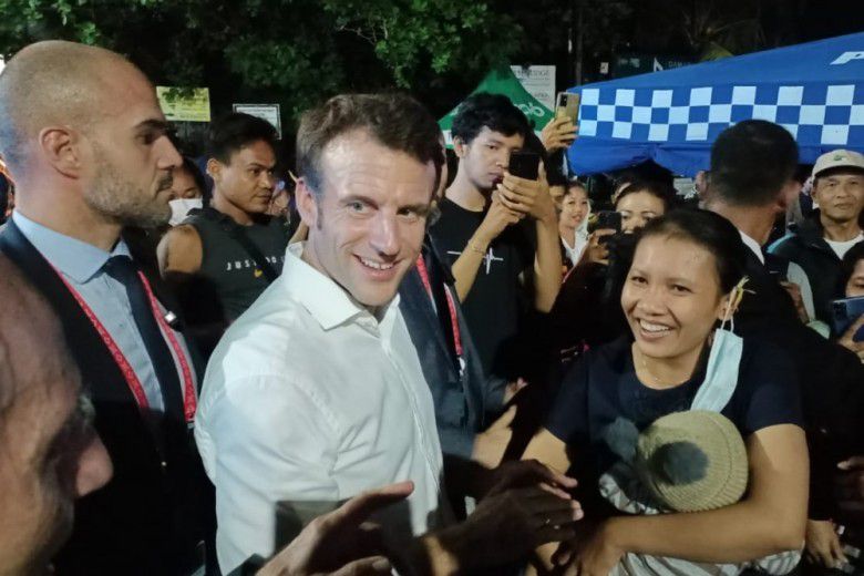 Usai makan malam di Garuda Wisnu Kencana Cultural Park Bali, orang nomor satu di Prancis Emmanuel Macron memutuskan untuk berjalan kaki untuk menyapa warga kawasan Uluwatu. Macron yang malam itu mengenakan kemeja putih dikawal oleh pengawal pribadi, paspampres, polisi, dan anggota TNI.