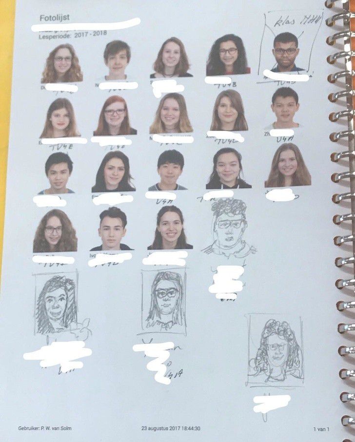 Setiap ada murid baru yang bergabung, bukannya mencetak daftar murid yang baru, guru kreatif satu ini malah menggambar wajah muridnya.