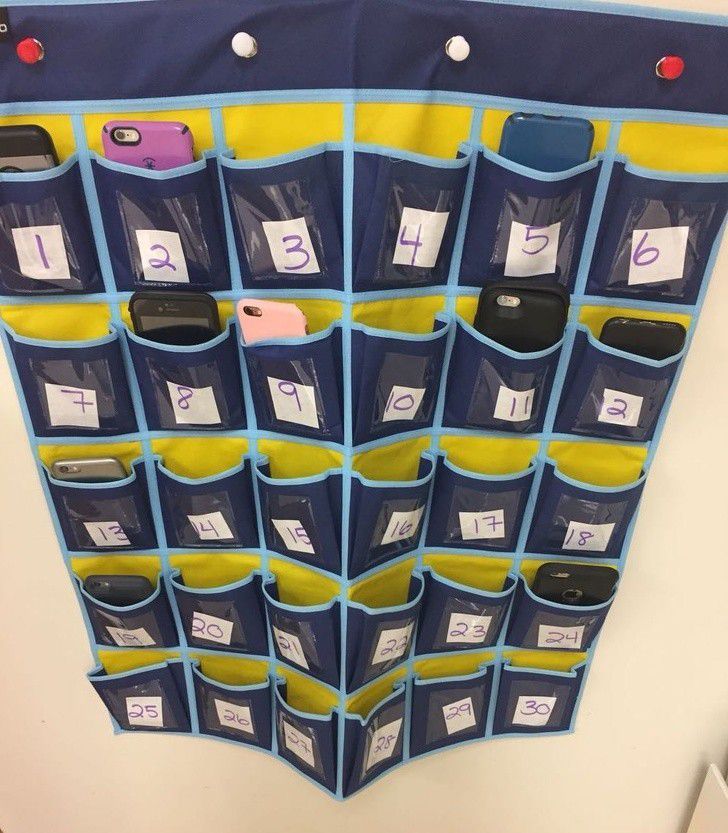 Kalo ini super perhatian banget gurunya. Selama pelajara Bahasa Spanyol, siswa diharuskan meletakkan smartphone di wadah yang udah disediakan.