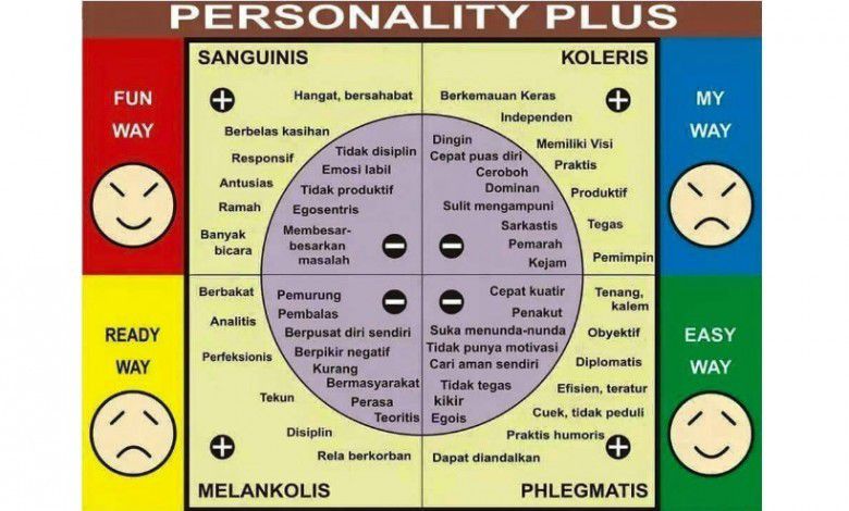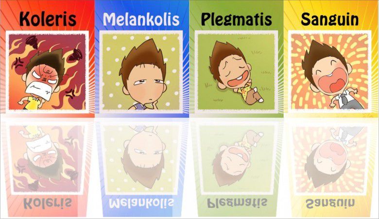Dalam ilmu Psikologi, dijelaskan kalo ada 4 tipe kepribadian manusia. Keempat tipe tersebut yakni tipe kepribadian koleris, plegmatis, melankolis dan sanguinis.
