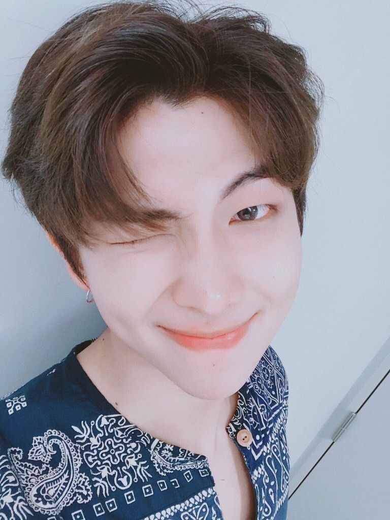 Member boyband Korea BTS, RM, mengaplikasian model potongan rambut middle part curtain cut. Meski terkesan oldschool, tapi terlihat pas dan muda untuknya.