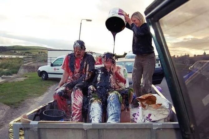 Di pedesaan Skotlandia dan Irlandia Utara ada sebuah tradisi pertunangan yang unik. Sebelum hari pernikahan, kedua mempelai akan disiram dengan cairan hitam lengket dari berbagai jenis kotoran oleh keluarga mereka sendiri. Selanjutnya, mereka akan diikat ke pohon. Ini merupakan simbol bahwa mereka siap menghadapi hal seburuk apapun kedepannya nanti.