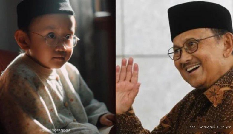 3. Potret masa kecil Presiden Habibi sedikit berbeda, pasalnya ia digambarkan dengan memakai kaca mata dengan kesan yang cukup serius untuk ukuran anak-anak. Posenya pun sambil baca buku. Mirip banget sih sama Habibi dewasa.