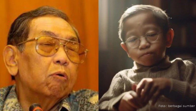 4. Potret kecil Presiden Gus Dur juga digambarkan serius dengan gambar anak kecil memakai kaca mata, tangan kanan kirinya menempel seolah sedang berpikir serius.