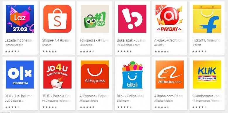 Berbagai aplikasi belanja online (tanpakoma.com)