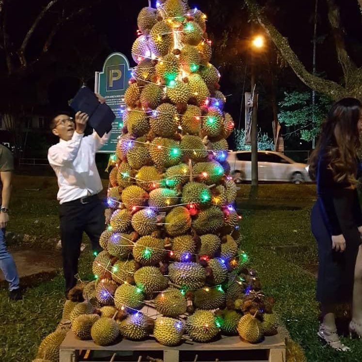 5. Pohon Natal di Gereja Food Fellowship di Kuching, Malaysia gak mau kalah. Pake buah durian! Kelar Natalan langsung pesta durian deh.