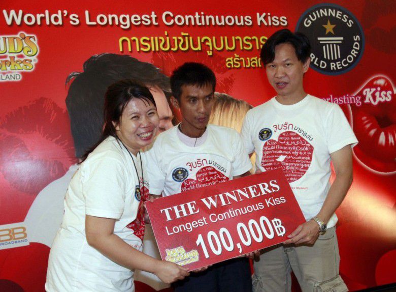 Rekor ciuman bibir terlama di dunia dipegang oleh orang Thailand bernama Ekkachai dan Laksana Tiranarat. Mereka berciuman selama 58 jam, 35 menit dan 58 detik pada tahun 2013. Terbayang nggak tuh bentuk bibirnya seperti