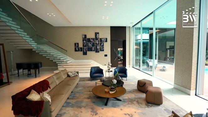 Saat pertama kali masuk ke rumah, ruang tamu yang nyaman langsung menarik perhatian. Desain yang modern dan didominasi dengan warna krem serta putih, membuat tamu betah berlama-lama duduk di ruang tamu ini.
