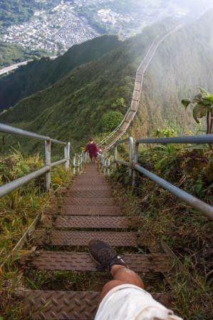 Haiku Stairs mempunyai tangga yang membentang di Pegunungan Oahu Koolau di Pulau Oahu, Hawaii. Tangga ini berada di ketinggian yang menakjubkan. Pokoknya kalo udah berada di tangga, tengok kanan kiri ada pepohonan yang indah serta jurang. Ya ngeri-ngeri sedap.