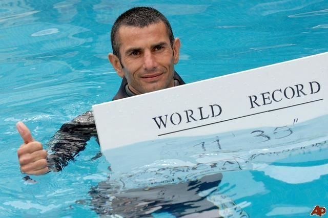 Stephane Misfud memegang rekor 5 kali menahan nafas, rekor terbaiknya di buat pada 8 Juni 2009 di kolam renang Hyres Prancis selama 11 menit 35 detik.