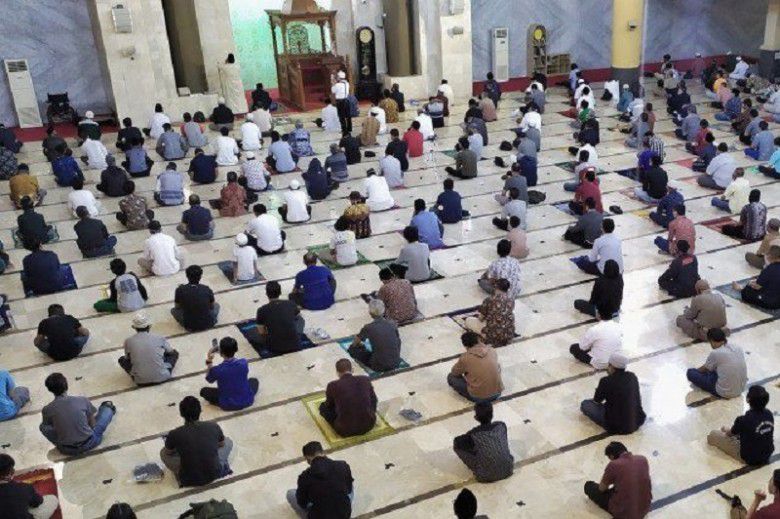 Suasana salat jamaah dalam kondisi pandemi (Pikiran Rakyat)