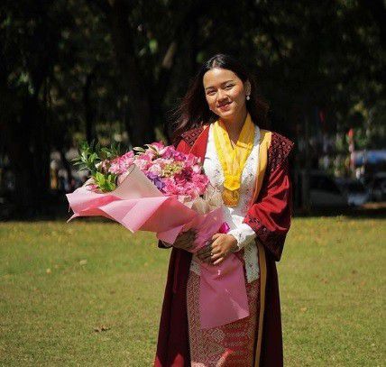 Jian memiliki wajah yang manis. Kulitnya sawo matang. Jian merasa sangat bangga dengan keberhasilan bisa lulus dengan predikat Cum Laude. “Kepada diri sendiri, terimakasih atas segala jerih payahnya dan sudah berusaha hingga akhirnya selesai juga. From now, you’re on your own kid,” tulis Jian.