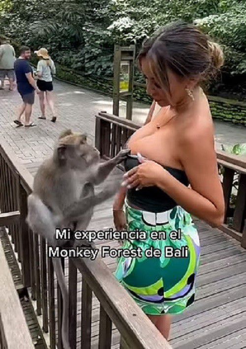 Uniknya, monyet tersebut rupanya tidak terima dengan usaha perempuan 28 tahun itu. Saat tahu Paula berusaha mencegah kembennya melorot, sang monyet terlihat melayangkan tamparan ke wajah Sang ratu Kecantikan.