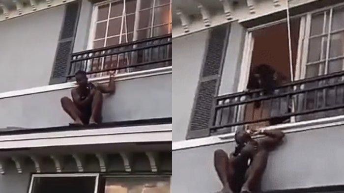 Tampak dalam video yang beredar, kondisi pria tersebut terbilang memprihatinkan. Dia tidak memakai busana dan hanya mengenakan celana pendek saja. Terlihat satu tangannya memeluk baju yang sebelumnya dia pakai. Sementara tangannya yang lain berpegangan pada railing agar tidak jatuh.