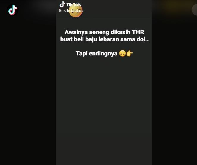 "Awalnya seneng dikasih THR buat beli baju lebaran sama doi," tulisnya dalam keterangan video.