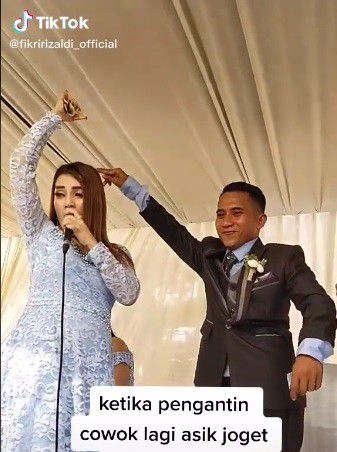 Pengantin Pria Berjoget dengan Penyanyi (TikTok @fikririzaldiofficial)