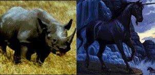 Disebut mirip karena mereka sama-sama memiliki tanduk pada kepalanya. Meskipun begitu, Marcopolo pada abad ke 13 dalam tulisannya menyebutkan ia pernah melihat unicorn hitam di kepulauan Indonesia. Ternyata yang dilihat Marcopolo bukanlah unicorn melainkan badak.