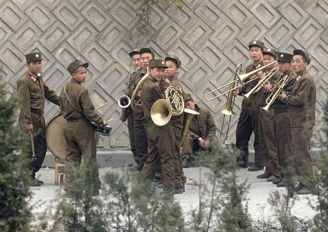 Nah ini ada juga tentara yang ada di pinggir jalan tol. Bawa alat musik juga gengs. Masak sih mereka lagi latihan??