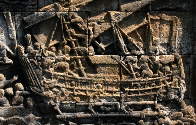 (Kapal jung penanda kebesaran Sriwijaya yang diduga kuat didokumentasikan pada relief Candi Borobudur. (Foto Dok Kemendikbud))