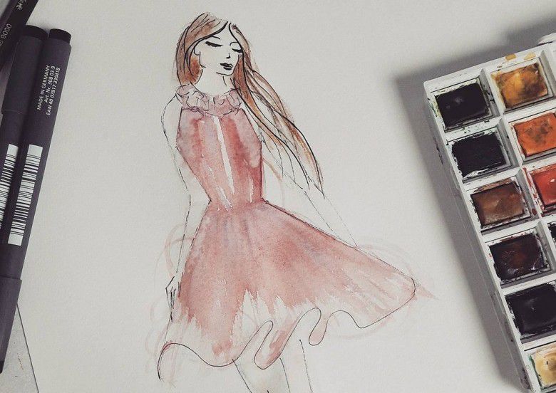 Mulailah dengan hal yang umum seperti bentuk dasar busana gengs, lalu tambahkan dikit-dikit detailnya saat rancangan tersebut sudah kebentuk. Ketika kamu sudah puas, tebalin seluruh gambar dengan pena.