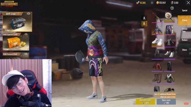 Yotuber asal Indonesia yang juga main PUBGM kemarin mengunggah video sedang nge-gacha crates PUBG Mobile buat dapetin set Bape tersebut. Awalnya dia punya 16.385 UC voucher buat beli BAPE Crate. Dengan berharap bahwa salah satu crate berisi kostum BAPE.
