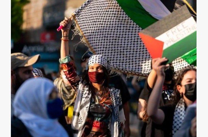 Bella Hadid saat terlibat pada demonstrasi Israel Palestina di Brooklyn, New York City (instagram)