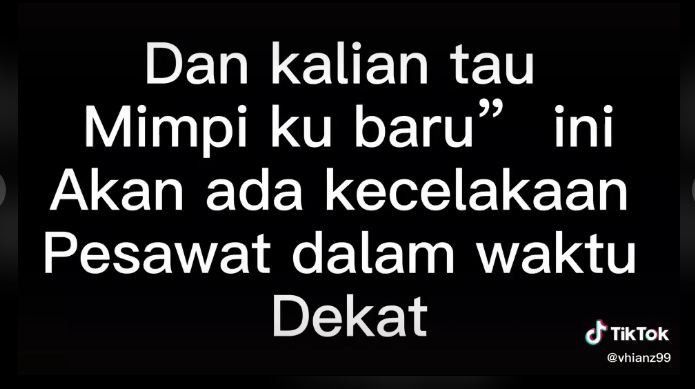 Firasat salah seorang pegawai maskapai sebelum kecelakaan Sriwijaya Air SJ 182 (TikTok)