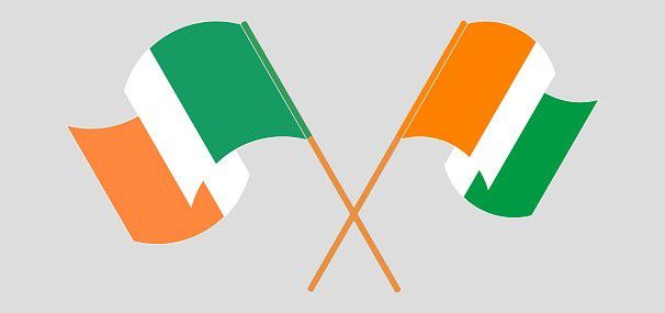 Irlandia merupakan negara di Eropa sementara Pantai Gading di Afrika. Siapa sangka warna bendera memiliki kesamaan dalam hal garis vertikal dan unsur warna bendera yakni hijau, putih, dan oranye. Namun yang membedakan hanya urutan saja, bila bendera Irlandia adalah warna hijau, putih, oranye sedangkan bendera Pantai Gading adalah oranye, putih, dan hijau.