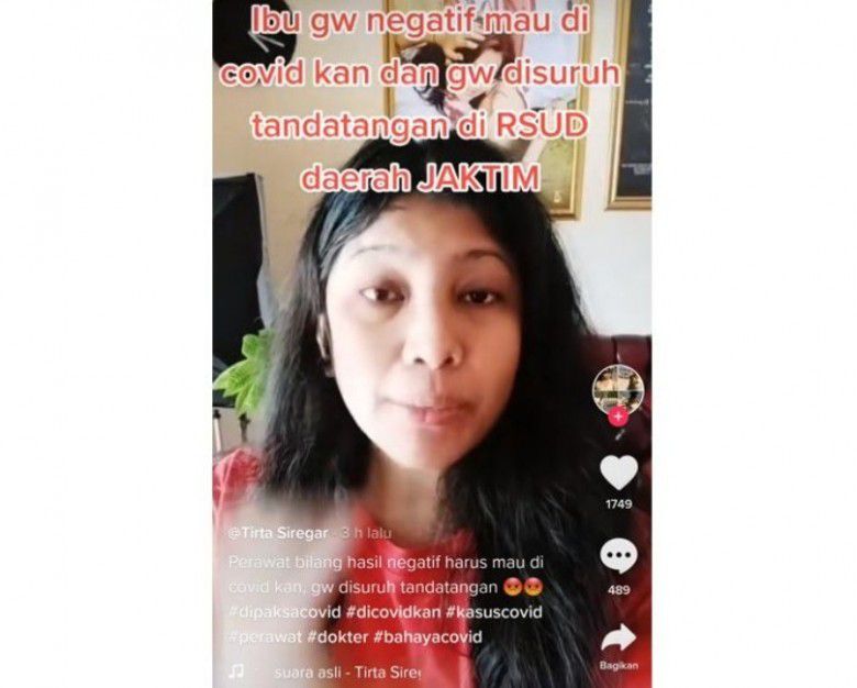 "Ibu gw negatif mau dicovidkan dan gw disuruh tandatangan di RSUD daerah Jaktim," tulis keterangan video yang diunggah di akun @tirtasiregar, yang dikutip Suara.com, Senin (21/2/2022).