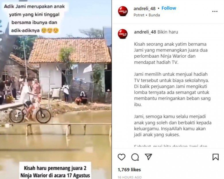 Kisah itu pun diunggah ulang melalui akun Instagram @andreli_48 pada Minggu (21/08/22). Dari video itu, telrihat momen ketika anak laki-laki bernama Jami sedang mengikuti lomba ninja warior saat perayaan 17 Agustus lalu. Ia pun tampak semangat berjuang memenangi segala rintangan yang ada.