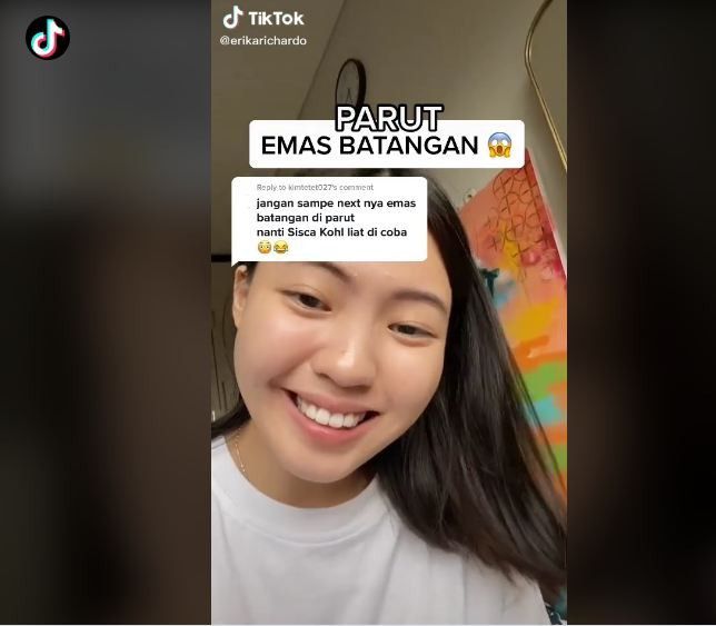 Momen memarut emas batangan itu dilakukan oleh TikTokers bernama Erika Richardo di TikTok miliknya. Hingga berita ini dibuat, aksinya itu telah disaksikan 10,8 juta kali dan mendapatkan 1,3 juta tanda like dari pengguna TikTok lainnya.