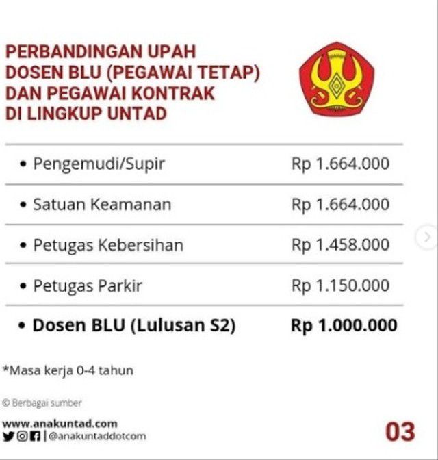 Perbandingan upah dosen dan pegawai kontrak kampus Untad (kumparan.com)