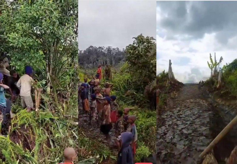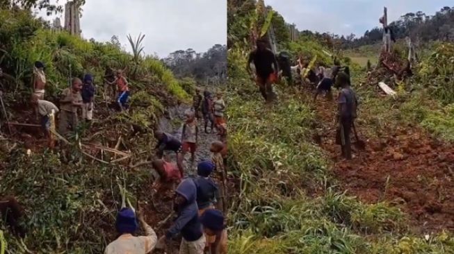 Kerja keras murid dan warga papua bikin akses jalan (suara.com)