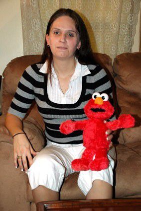 Melissa Bowman dan boneka Elmo milik anaknya, James (muppet.wikia.com)