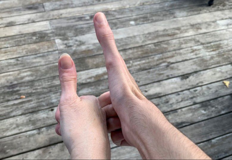 Uniknya, ukuran ibu jari Jacob emang jauh lebih panjang dari jari-jari tangannya yang lain.