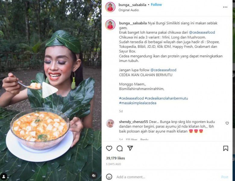 Melalui akun Instagramnya, Bunga terlihat membagikan video ketika sedang mereview makanan sambil menggunakan busana tersebut.