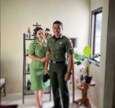 Dalam unggahan itu, Clara memakai baju Persit atau Persatuan Istri Tentara sementara Manganang memakai kemeja hijau TNI lengan pendek. Manganang pun menuliskan kalimat yang cukup romantis.