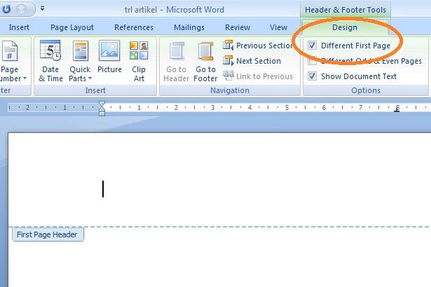 Kalo kalian mau bikin kop surat di semua halaman jangan centang Different First Page-nya. Nanti bakal muncul kop surat yang kalian bikin di halaman pertama pada semua halaman.