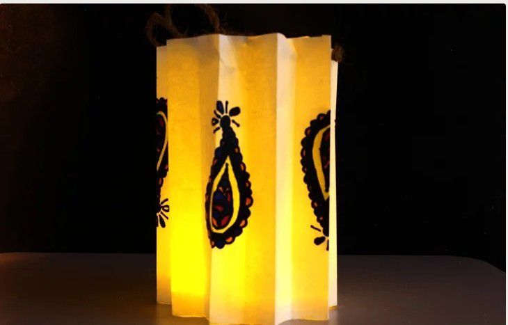 Setelah itu kamu tinggal menikmati Masukkan lilin elektronik kecil di dalam lampion dari bahan kertas. Selamat mencoba.