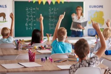 Ilustrasi anak mengikuti pelajaran di sekolah (via Grid)
